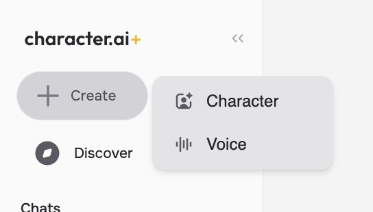 With a concept in mind, click on **+** **Create** in the nav bar, and then **Create a Character**.