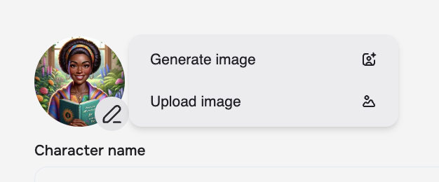 The avatar is the image that will appear next to the Character. You can select from generating an image or uploading an image.